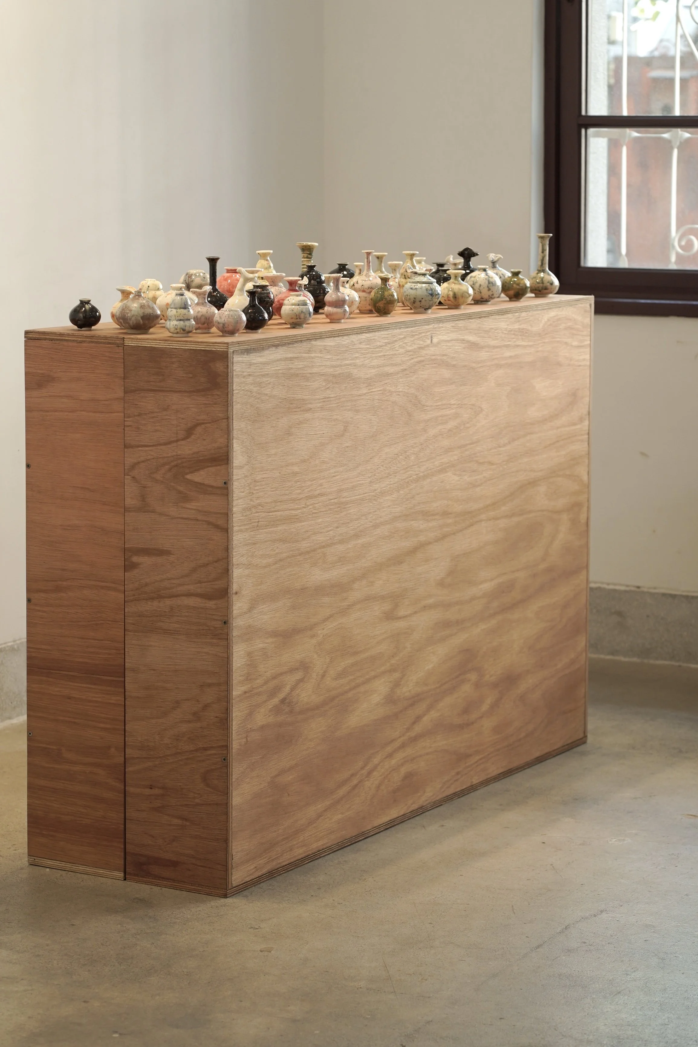 This series of Wink-ish moon jars, consisting of about 400 pieces, have travelled half the globe.., from London to Taichung City in Taiwan.